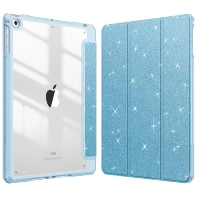 FINTIE Hybrid Case for iPad 6th/5th Gen (2018 2017) and Air 2/Air 1 (2014 2013) 9.7 Inch Shockproof Hard Shell Clear Cover with Pencil Holder, Glittering Blue