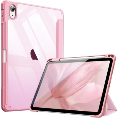 FINTIE Hybrid Case for iPad (A16) 11th Generation 11 Inch (2025), 10th 10.9 (2022) [Ultra Slim] Shockproof Clear Cover w/Built in Pencil Holder, Auto Wake/Sleep, Baby Pink