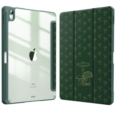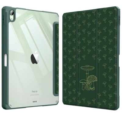 FINTIE Hybrid Case for iPad Air 11 Inch M3 (2025) / M2 (2024), 5th 4th Generation (2022/2020) Shockproof Slim Clear Back Cover with Pencil Holder, Auto Wake/Sleep, Mushroom