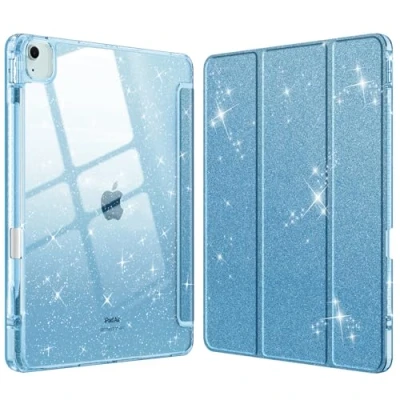Fintie Hybrid Case for iPad Air 13 Inch (M3) 2025, (M2) 2024 with Pen Holder Shockproof Protective Transparent Hard Shell on the Back Case, Glitter Blue