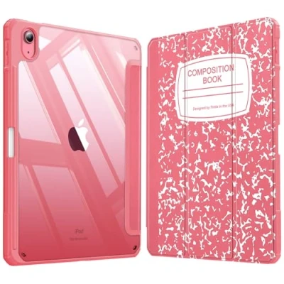FINTIE Hybrid Slim Case for iPad 10th Generation 10.9 Inch Tablet (2022 Model) [Built in Pencil Holder] Shockproof Cover with Clear Transparent Back Shell, Auto Wake/Sleep, Composition Book Pink