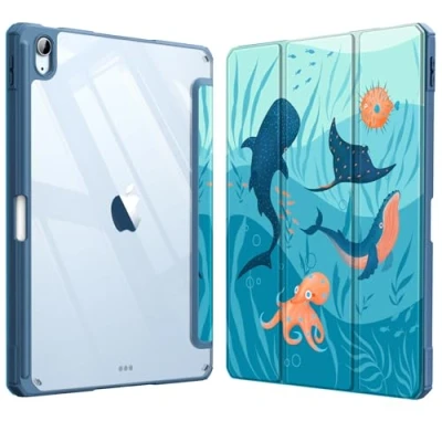 Exclusively designed for iPad Air 11-inch (M4) 2026, iPad Air 11-inch (M3) 2025 (Model: A3266 / A3267 / A3270), iPad Air 11-inch (M2) 2024 (Model: A2902 / A2903 / A2904), iPad Air 5th Generation 10.9 Inch 2022 (Model: A2588 / A2589 / A2591), iPad Air 4th Generation 10.9 Inch 2020 (Model: A2072 / A2316 / A2324 / A2325). Not compatible with any other devices. Hardshell back cover with flexible TPU bumper protects your iPad from shocks, drops and impacts. Soft microfiber interior front prevents your tablet from scratched. The crystal-clear transparent back cover proudly shows off the Apple icon and allows you to customize your case by adding stickers or showcasing photos. Seamlessly supports Apple Pencil Pro / Apple Pencil 2nd Gen magnetic and wireless charging when case is on. Tri-fold front cover has flip capability to transform the iPad case into a viewing stand and keyboard stand. Built-in Pencil holder, grab your pencil effortlessly whenever you want, easily to carry your iPad pencil with your device. (Case only, other accessories not included!) Easy clip-on application. With built-in magnets, automatically wakes or puts your device to sleep when the lid is opened and closed.