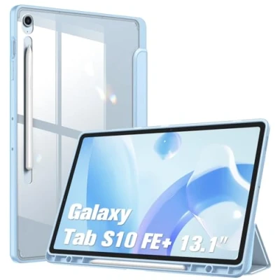 Perfect Compatibility: This case is compatible with Samsung Galaxy Tab S10 FE+ Plus 13.1 inch (Model SM-X620/X626) 2025 Release. It will NOT work for any other model device Crystal Clear Back Cover: Transparent hard back cover shows off the original beauty of your device. [NOTE] Please remove the inner and outer film before using!!! Upgraded S Pen Holder: The S Pen holder is located on the left side. This allows you to hold the device securely in the case without it falling out Adjustable Stand Angles: Tri-fold front cover has flip capability to transform the Samsung Tab S10 FE+ case into a viewing stand and keyboard stand Great Protection: Hardshell back cover with flexible TPU bumper protects your tablet from shocks, drops and impacts. Soft microfiber interior front prevents your tablet from scratched. Built-in S Pen holder for keeping your S Pen safe and secure
