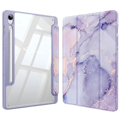 FINTIE Hybrid Slim Case for Samsung Galaxy Tab S10 Lite/ FE 2025/ S9 10.9 Inch/ 11 Inch 2023 with S Pen Holder, Shockproof Cover Clear Back Shell, Auto Wake/Sleep, Lilac Marble