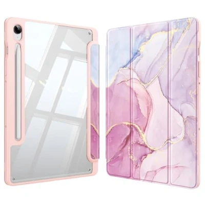Fintie Hybrid Slim Case for Samsung Galaxy Tab S9 FE 10.9 Inch/Galaxy 11 Inch 2023 with S Pen Holder, Shockproof Cover Clear Transparent Back Shell, Auto Wake/Sleep, Dreamy Marble