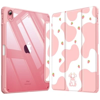 Fintie iPad 10th Generation 2022 Hybrid Case with Pen Holder Shockproof Protective Clear Hard Back Cover Strawberry Cow