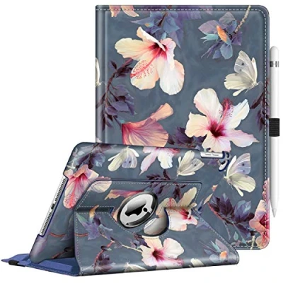 FINTIE Rotating Case Compatible with iPad 6th Generation (2018)/ 5th (2017)/ Air 2/Air 1 9.7 Inch 360 Degree Swivel Stand Protective Cover, Auto Wake/Sleep, Blooming Hibiscus