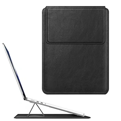 Compatible with Macbook Air 13.6'' 2024-2022 (M3/M2 A3113 A2681), MacBook Air 13'' 2020-2018 (M1 A2337 A2179 A1932), MacBook Pro 13'' 2022-2016 (M2/M1 A2338 A2251 A2289 A2159 A1989 A1706 A1708), 12.45'' Microsoft Surface Laptop Go 3/2/1, 12.9'' iPad Pro 2022-2018 (6/5/4/3rd gen) and others up to 13.6'' laptop/tablet. 3-in-1 laptop sleeve - the slim sleeve not only can protect your computer, but also can be used as a stand, and the flip pad can work as a portable mouse pad. It's more comfortable to watch movies, type, and work. Premium synthetic leather exterior and soft microfiber interior prevent your device from finger prints, dirt, and scratches. Magnetic closure keeps your precious device securely inside without dropping out. Slim and lightweight to take alone, or slide it into your briefcase, backpack or any other bag when you go to school, work or travel.