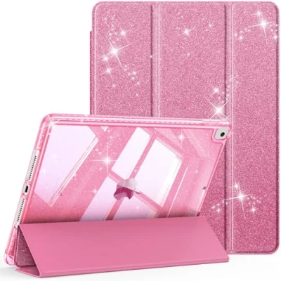 FINTIE Slim Case for iPad 9th / 8th 7th Generation (2021/2020 2019) 10.2 Inch [Built in Pencil Holder] Glittering Sparkly Shockproof Cover with Shiny Clear Back Shell, Auto Wake/Sleep, Pink
