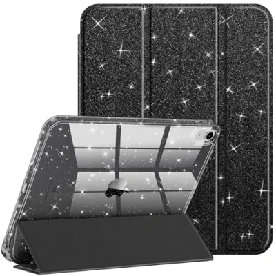 FINTIE Slim Case for iPad (A16) 11th Generation 11 Inch (2025), 10th 10.9 (2022) [Built in Pencil Holder] Sparkly Cover with Shiny Back Shell, Auto Wake/Sleep, Black