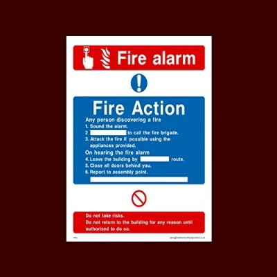 Fire Action Fire Alarm Plastic Sign - Fire, Assembly Point, Break Glass, Lift, Alarm, Extinguisher - (FA15)