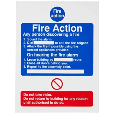 Fire Action: Any Person Discovering A Fire Sign 150mm x 200mm Material: STAUFEN 1mm High Gloss Rigid Plastic Which Allows Flush Fittings To Walls Manufactured By UK Safety Store With A 5 Year Warranty Screen Printed Direct To The Material For A Better Finish, Manufacturer: UK Safety Store