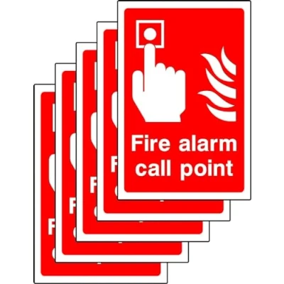 Fire action call point safety signs Self adhesive stickers 150mm x 100mm Pack of 5 - Saving you £3.99 Remove backing film and apply to dry, smooth, oil free surface. Digitally printed and laminated for extra durability