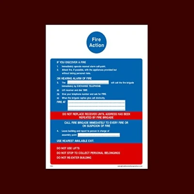 Fire Action Discovering a fire Sticker/Self Adhesive Sign - Fire, Assembly Point, Break Glass, Lift, Alarm, Extinguisher - (FA10)
