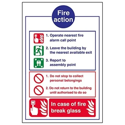 Fire Action General Break Glass 200 X 300mm Restickable Safety Sign