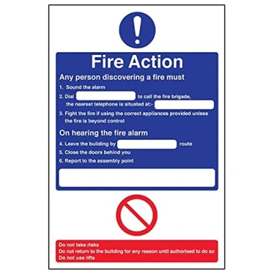 Fire Action General Telephone 200 X 300mm Restickable Safety Sign