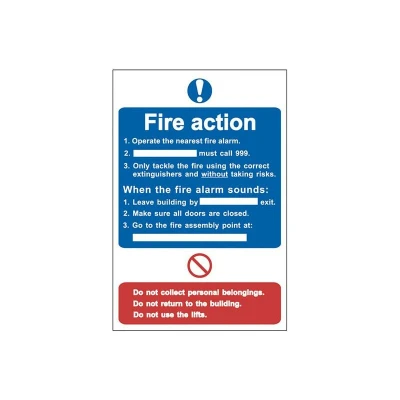 General description This SCAN Fire Action Procedure sign is made from durable 1mm thick PVC material. It features clear instructions and illustrations to guide users during a fire emergency, ensuring visibility and understanding to promote safety in workplaces or public spaces. Technical specifications Size: 200 x 300mm Material: PVC, 1mm thick Print: UV resistant inks for fade resistance Compatibility and accessories Suitable for indoor and outdoor use on smooth surfaces Can be mounted on walls or doors with adhesive backing Installation Ensure the surface is clean and dry before applying Peel off the backing and press firmly onto the surface Usage Place in visible locations where fire safety procedures are needed Use as part of your safety signage to inform and instruct personnel during emergencies Other information Complies with BS5499 and/or ISO 7010 design criteria where applicable Helps limit company liability should an accident occur