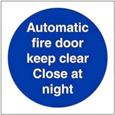 Fire Door & Mandatory Auto. Keep Clear Close At Night 100 X 100mm