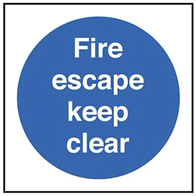 Fire escape keep clear (Ultra Durable 2mm PET safety sign)