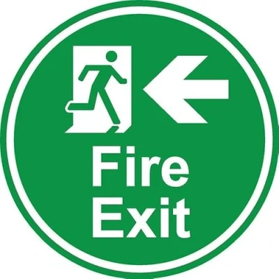 Fire exit left arrow emergency floor sticker. Self adhesive floor graphic. Fitted with an anti slip heavy duty over-laminate to prevent slips. All signs come with a 5-year warranty. All our signs are UV resistant meaning they will not fade in sunlight.