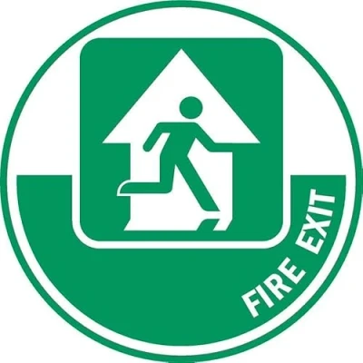 Fire exit sign, arrow pointing up. Floor sticker. Self adhesive floor graphic. Fitted with an anti slip heavy duty over-laminate to prevent slips. All signs come with a 5-year warranty. All our signs are UV resistant meaning they will not fade in sunlight.