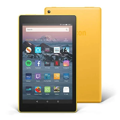 POWERFUL TABLET — Up to 10 hours of battery life, a vibrant 8" HD display, a 1.3 GHz quad-core processor, 1.5 GB of RAM and Dolby Audio. EXPANDABLE STORAGE — 16 or 32 GB of internal storage and a microSD slot for up to 512 GB of expandable storage. DESIGNED FOR ENTERTAINMENT — Enjoy millions of movies, TV shows, songs, Kindle eBooks, apps and games including Netflix, Facebook, Spotify and more. PRIME BENEFITS — Prime members get unlimited access to over a thousand books and magazines, millions of songs, and thousands of movies and TV episodes, at no additional cost. HANDS FREE WITH ALEXA — Use Alexa hands-free mode to pause videos, play music, open apps, show sports scores, display the weather, and more—just ask. ALEXA CAN SHOW YOU THINGS — With Show Mode you can transform your tablet into a full-screen Alexa experience optimised for visibility across the room.
