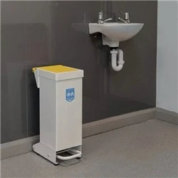 Manufactured from corrosion resistant galvanised steel and all metal fixings. Foot pedal operated. Anti-microbial paint finish to reduce risk of harmful bacteria spreading. Features a leakproof tray to catch any leaks from bag punctures or overfilling.