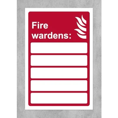 Fire Warden sign with 5 blank spaces Safety sign 1.2mm Rigid plastic 300mm x 200mm Digitally printed and laminated for extra durability Drill and screw in position or use double sided tape to mount onto suitable surface.