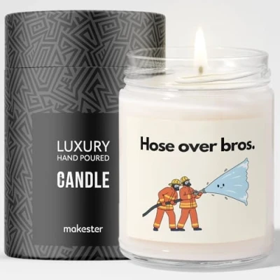 Hose over bros. Quality Over Everything - We've scoured every nook, cranny, and soybean field to get the top-shelf stuff for our candle - the kind of wax and essential oils that would make a candle connoisseur weep with joy. Fresh Fragrance - A captivating aroma made from natural essential oils and a blend of sugared almond, vanilla, and white musk. It's (probably) the best-smelling candle in the world. Great Size, Unforgettable Glow - 220g of high-quality soy wax ensures that this candle will keep on going and going. Enjoy over 40+ hours of uninterrupted candle pleasure.