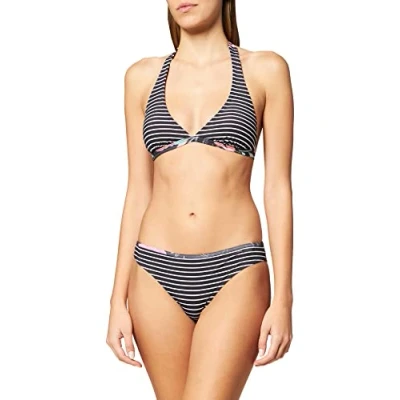 Halter neck for tying at the neck Design mix of flowers and stripes Machine Wash With removable padding Quick-drying