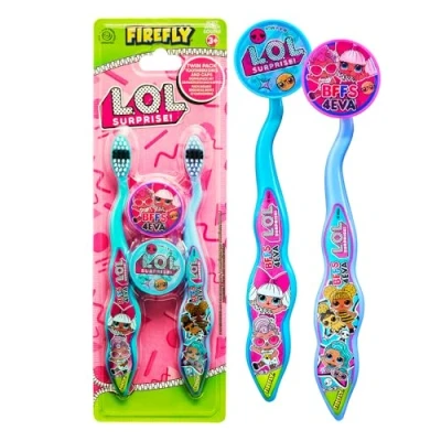 Firefly LOL Surprise Manual Toothbrush Duo + Hygiene Cap 2 Pack for Little Trendsetters