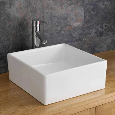 Firenze 370mm White Ceramic Small Square Countertop Basin Clickbasin