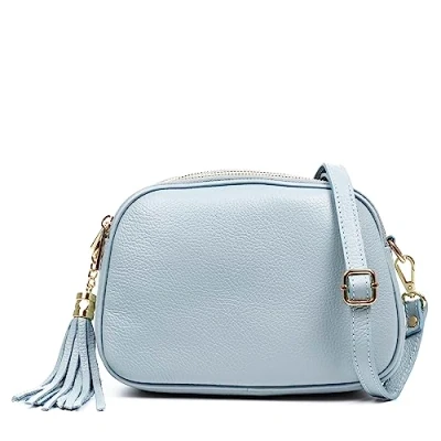 FIRENZE ARTEGIANI. Aliminusa Women's Crossbody Bag Genuine Leather Dollaro, 22 x 9 16 cm, Colour: light blue, Utility
