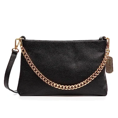 FIRENZE ARTEGIANI. Angri Women's Shoulder Bag Genuine Leather Dollaro Finish 27.5 x 4.5 17.5 cm. Colour: Black, Black/White, Utility