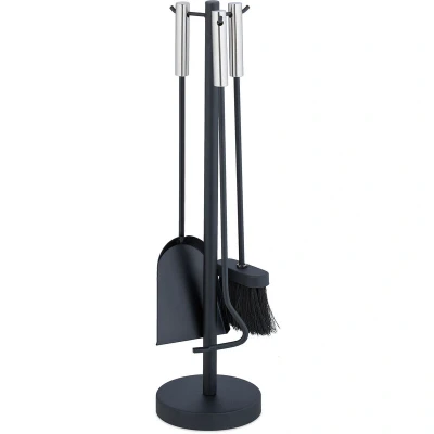 General description A crackling open fire brings warmth and coziness into your home on cold and rainy days. The Relaxdays Fireplace Tool Set ensures that the fire burns for a long time while keeping the fireplace clean. When hung on the stand, the tools are always within reach and neatly stored. Technical specifications Stand dimensions (H x D): approx. 57 x 14.5 cm Length of poker: approx. 45.5 cm Length of ash shovel: approx. 46 cm Length of ash broom: approx. 45 cm Total weight of set: approx. 1 kg Material: Iron, stainless steel Colour: Black Other information 4-piece Fireplace Accessories Set Modern stove set in black with stainless steel handles Practical set with ash shovel, broom, and poker Includes stand for hanging the stove tools Fireproof stove tools made from robust iron Sufficiently long for enough distance to the fire Designed for placing near the fireplace or stove