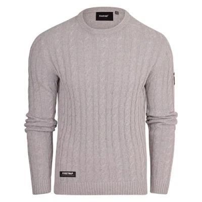 Firetrap Men's Cable Knit Jumper Casual Crew Neck Warm Long Sleeve Pullover Sweater Tops for Men Cotton Knitted Fisherman Jumpers Chunky Smart Designer Winter Sweaters Grey Marl XXL