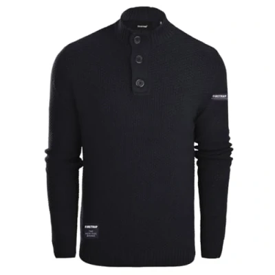 Firetrap Mens 3 Button Funnel Neck Jumper Pullover Winter Sweaters Cotton Blend Jumpers Quarter Half Men Top Jumoers Designer Smart Knitted Knitwear Sweatshirt for Black S