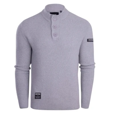 Firetrap Mens 3 Button Funnel Neck Jumper Pullover Winter Sweaters Cotton Blend Jumpers Quarter Half Men Top Jumoers Designer Smart Knitted Knitwear Sweatshirt for Grey M