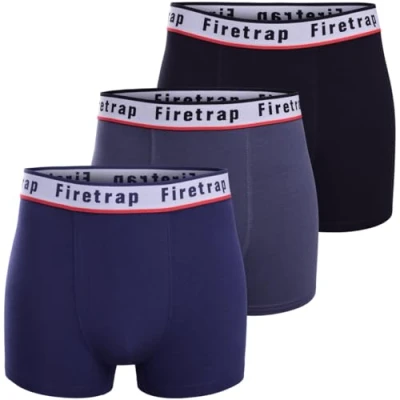 Firetrap Mens Boxer Trunks 3 Pack Stretch Cotton Underwear Breathable Comfort Fit Plain Colours Elastic Waistband Durable Everyday Wear Underpants Gift Set for Gym Work Black, Grey, Blue XL
