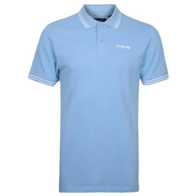 Firetrap Mens Polo Shirt Cotton Polos Tshirt Short Sleeve Summer Ribbed Tipping Collar Tshirts Top Sky XL