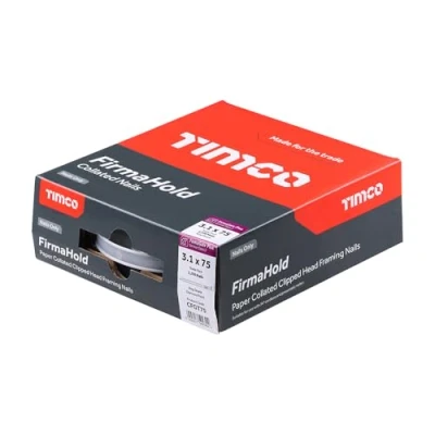Clipped head nails. 3,300 and 2,200 Quantity Trade Packs - collated with 44 nails in a strip without gas. Suitable for use in 34º cordless and pneumatic clipped head first fix nailers. For use in structural applications using high quality paper collation for reduced nail jams. Rust protection to comply with building regulations and meet with service classes. Ringed Shank: 28x50mm, 28x63mm, 31x75mm Plain Shank: 31x90mm Coating: Electro galvanised plating, suitable for indoor applications. Conforms to euro code 5 and service class 1. 34° collation angle, Manufacturer: Firmahold
