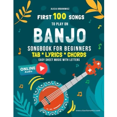 First 100 Songs to Play on Banjo I Songbook for Beginners: 5 String Sheet Music with Letters TAB Lyrics Chords Easy Solos Tablature Learn ... Traditional Christmas Folk Nursery Rhymes