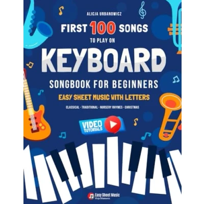 First 100 Songs to Play on Keyboard I Songbook for Beginners: Easy Sheet Music with Letters Big Book Kids Teens and Adults Classical ... Popular Folk Large Print Note