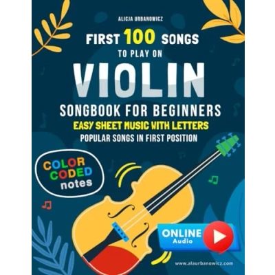 First 100 Songs to Play on Violin I Songbook for Beginners: Easy Sheet Music with Letters & Color Coded Notes Popular in the Position ... Series: Beginners)