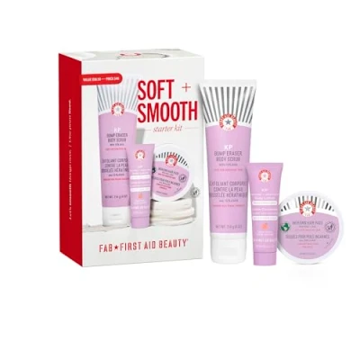 Boots78 Advantage card points. First Aid Beauty Body Bestsellers - Soft + Smooth Starter Kit 114g + 28.3g + 28pads FREE Delivery on orders over 45 GBP.