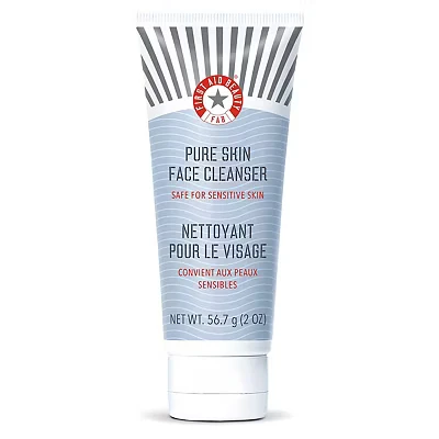 First Aid Beauty Pure Skin Face Cleanser Daily Facial Wash Cream with Antioxidant Booster Safe for Sensitive Travel Size, 56.7g