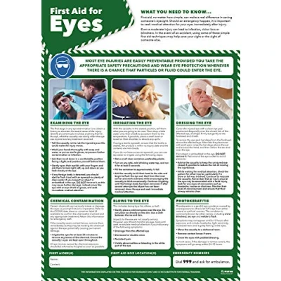 First Aid for Eyes Health and Safety Posters Laminated Gloss Paper 420mm x 594mm (A2) Office Commercial Wall Charts Education by Daydream