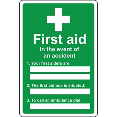 first aid in the event of an accident your aiders are fist box is situated Safety sign Self adhesive sticker (200mm x 150mm)