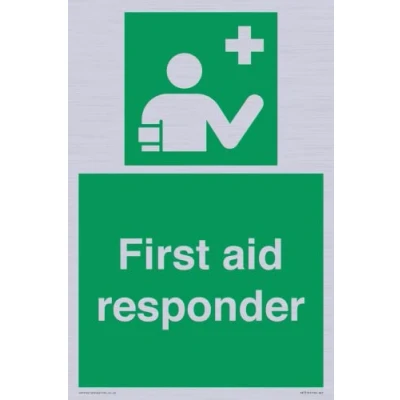 E064 : First aid responder This sign is made from vinyl silver sticker A4 portrait Sign Text: First aid responder