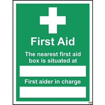 First aid The Nearest Box is situated at (Space) Aider in Charge Sign Self Adhesive Vinyl 150mm x 200mm